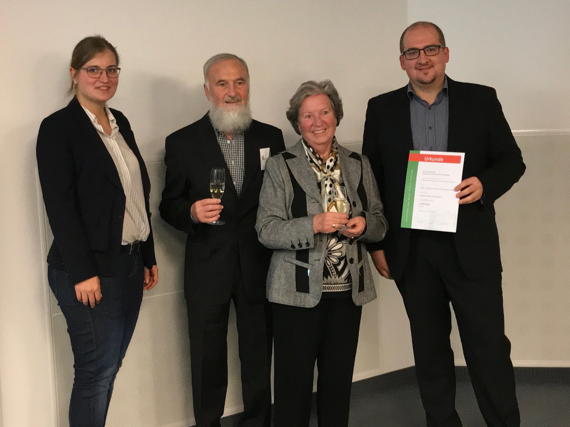 This year, the Anneliese and Heinz Frisch Foundation has awarded a sponsorship prize for the first time, which is endowed with a total of 8,000 euros. The Foundation awarded prizes to four projects from the fields of "Education" and "Art and Culture", which focus on the interests of children and young people and improve their educational opportunities. The award ceremony was held by Anneliese and Heinz Frisch in person and took place on the premises of the Frankfurter Sparkasse foundation administration.